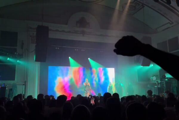 - Technical Mastery on Tour: Our Technicians managed the delicate calibration and geometry correction required for a touring projection setup, ensuring a seamless, high-definition “wash” that maintained its impact regardless of the venue’s house lighting or throw distance.
